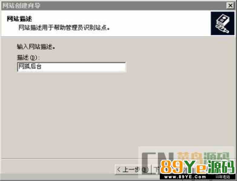 输入网站描述,可随意写上喜欢的名字,这里写上“网狐前台”。