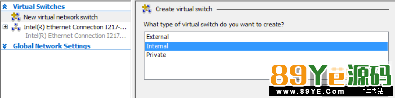 在Hyper-V中,能够创建三种类型的Virtual Switch: