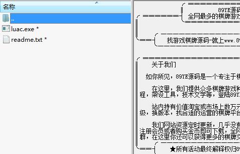 LuacGUI.exe来源为网上,可以对单个lua文件或者目标文件夹整体进行反编译,功能应该是对luc反编译的cmd命令进行了封装