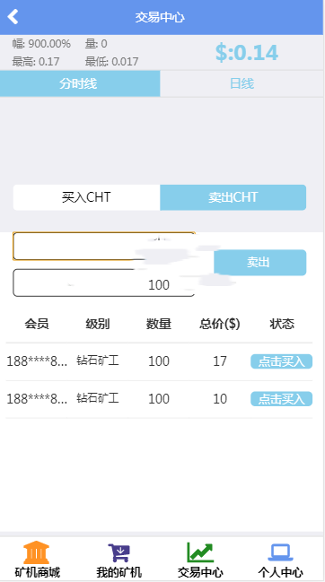 白铁矿工:直推:0人 团队总人数:1人 交易手续费:20% 可拥有算力:80G 赠送矿机:mini矿机*3