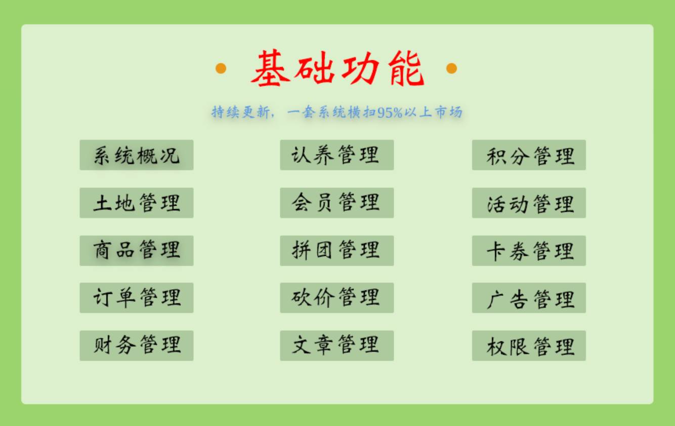 合作养殖共享联养,可实时查看认养价格、期限、回报率、已售占比等。活动专区,可自定义添加营销活动,给用户更好的农场体验。