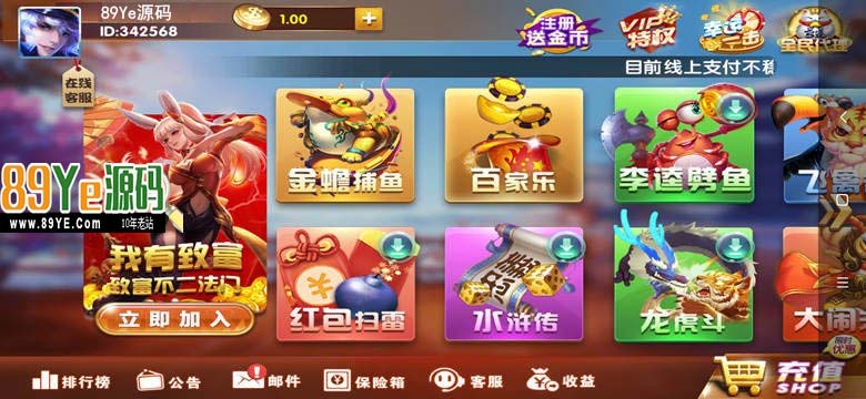 游戏功能:排行榜、财神活动、VIP特权系统、幸运一击活动、全民代理、在线客服系统等