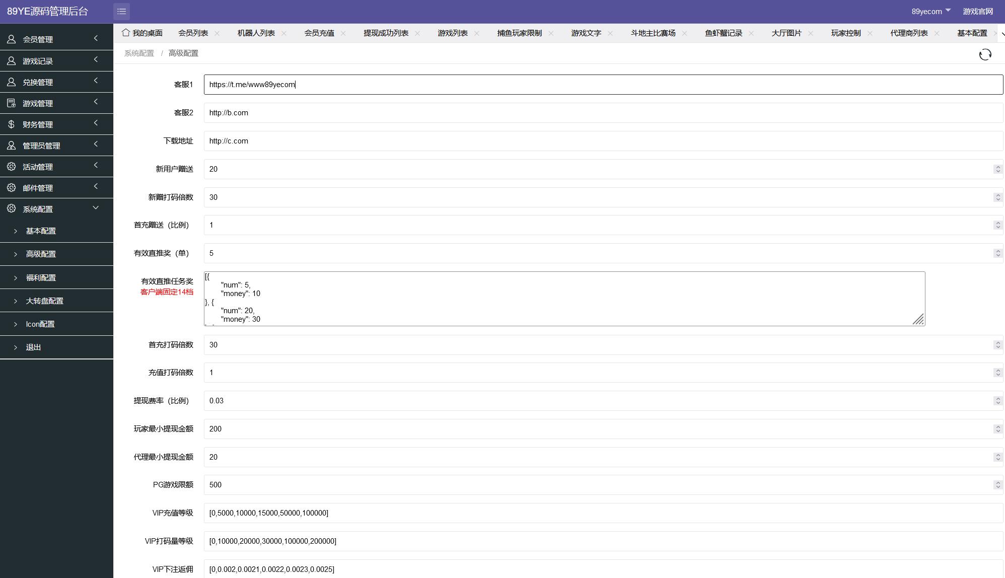 和之前发的一样,这个二开的更深度一些,单独的PC版本和横板手机端。H5虽然自适应,但是没这个效果好!代理充值等系统都是运营级别。语言可以加,目标版本2个语言。游戏看着不多,后期可以加。具体都可以加哪些看之前发的119个游戏的版本!后台新版重新截图了下,功能更多了!具体你们自己看吧!现在买的都包更新!有它谁还买分娱乐城?