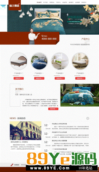3、适用于床上用品织梦模板、家居生活用品网站源码;