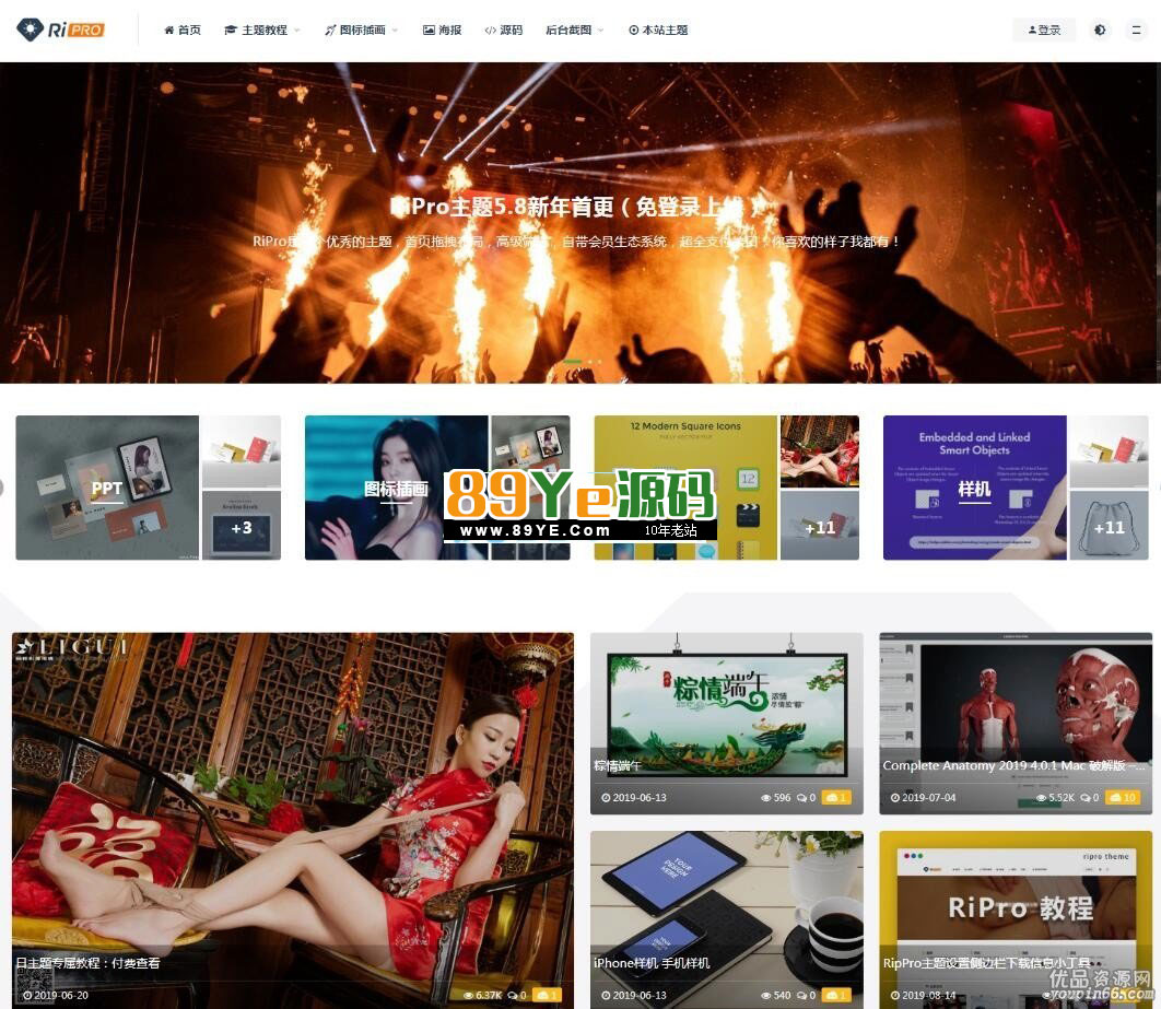 RiPro主题模板最新版无授权限制版 高级资源站下载主题+完整版