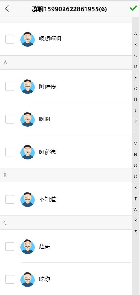 聊天列表 | 显示最近所有的聊天列表,点击列表某一项可以打开聊天窗口;还可以删除聊天列表项。 | |