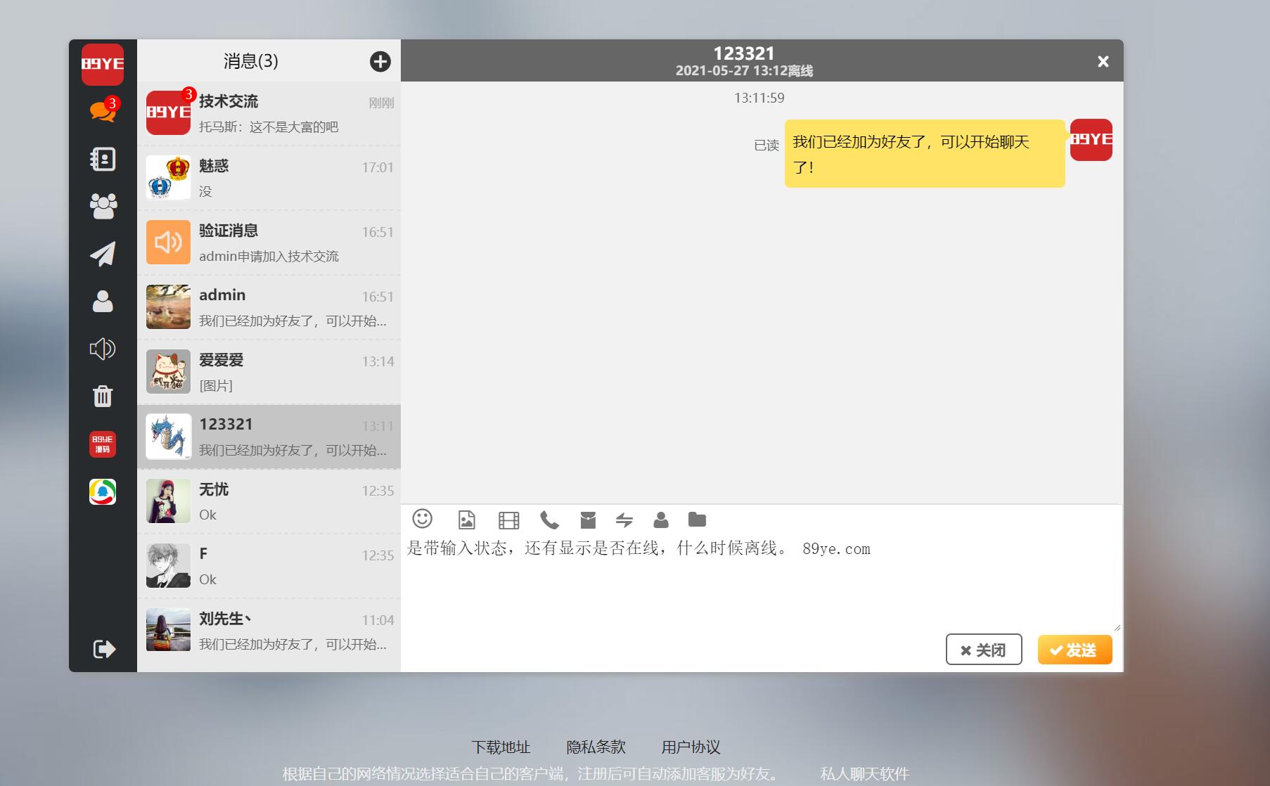 这款聊天IM源码是我们自用的,因为支持PC端和微信的PC端差不多,H5也和微信一样,安卓和苹果更是超过了微信部分功能。使用起来比较方便,带会员系统,代理系统,红包系统。其它的就不介绍了,你们可以自己在我们软件中测试。