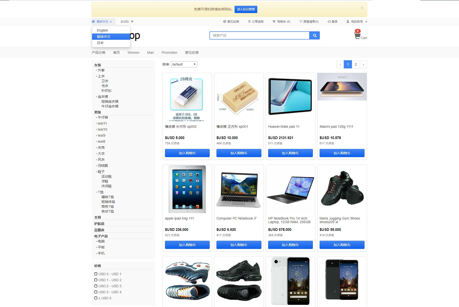 StrongShop 是一款免费开源的跨境电商商城网站。
