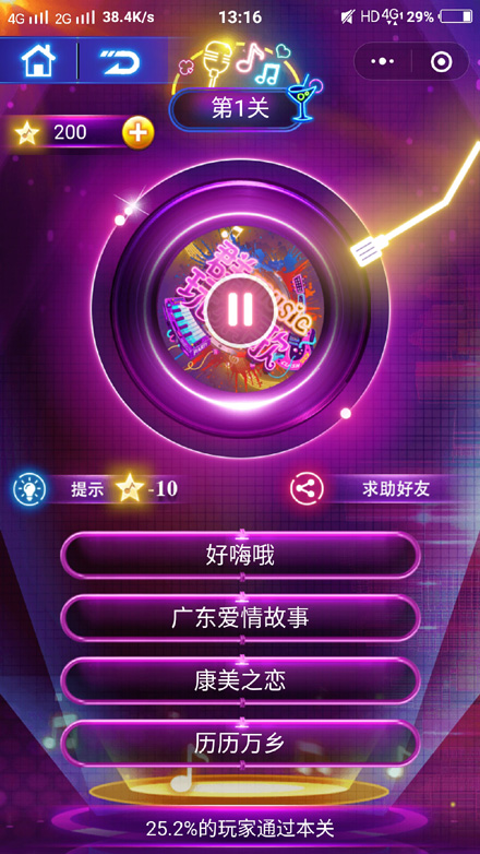 4,小程序可生成 小程序码或转发给好友来猜歌,双方都可获得积分,有助于推广