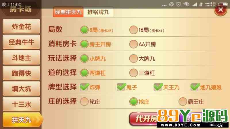 老夫子棋牌带控制 游戏分为房卡场、金币场、积分场、带俱乐部