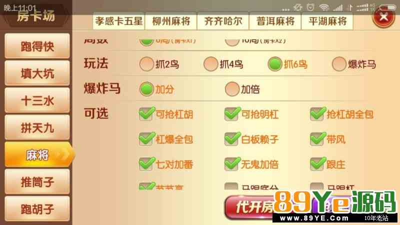 随州卡五星、襄阳卡五星、孝感卡五星、柳州麻将、齐齐哈尔、红中麻将、长沙麻将、营口麻将、台炮麻将、广东麻将、普洱麻将、平湖麻将、